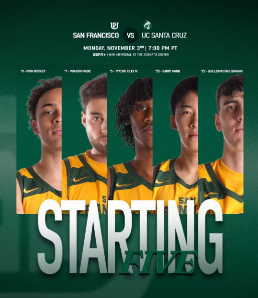 如今在新赛季的NCAA首场比赛,旧金山大学在上半场一边倒碾压对手,他们贡献38中21的高效投篮,其中三分13中6与罚球4中3,全队12人登场10人得分。反观加州大学圣克鲁兹分校被限制到27中5,其中三分9中2与罚球4中3,全队没有球员得分超过3分。