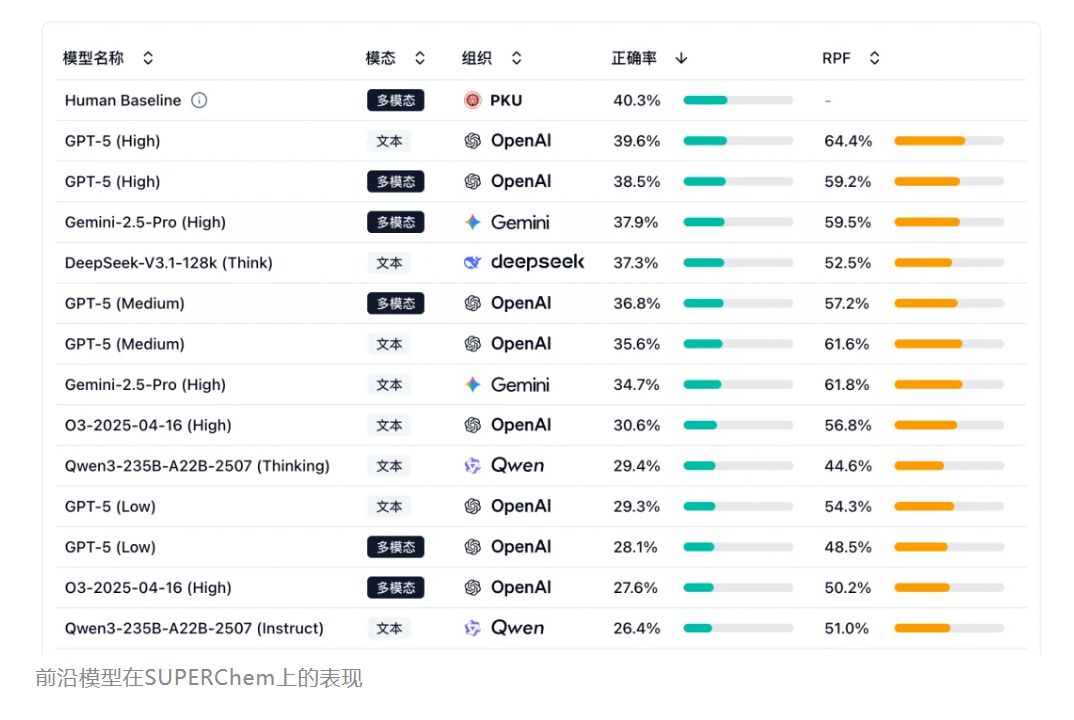 在这场精心设计的考试中,人类展现出了复杂的科学直觉。作为基线,参与测试的北大化院本科生取得了40.3%的平均准确率。这个数字本身,就足以说明这套题目的硬核程度。